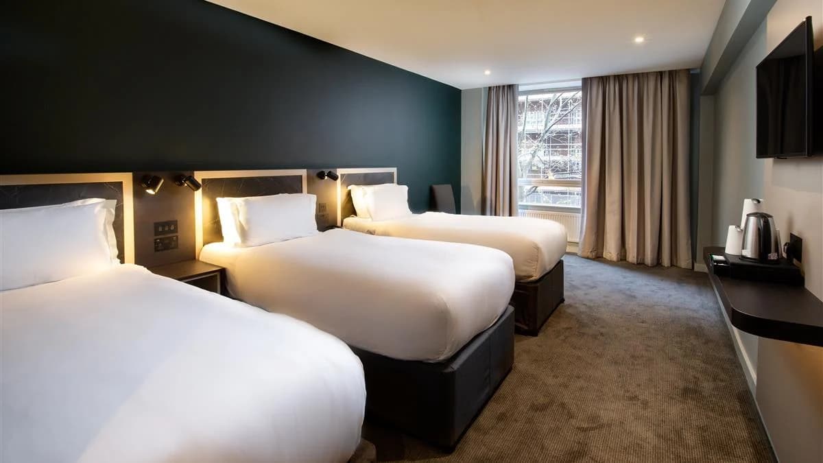 Sur place, vous trouverez plusieurs options de restauration, un pub typiquement britannique et un café-pizzeria pour vos pauses gourmandes. Que vous soyez en city break ou en voyage d’affaires, cet hôtel combine praticité et centralité.