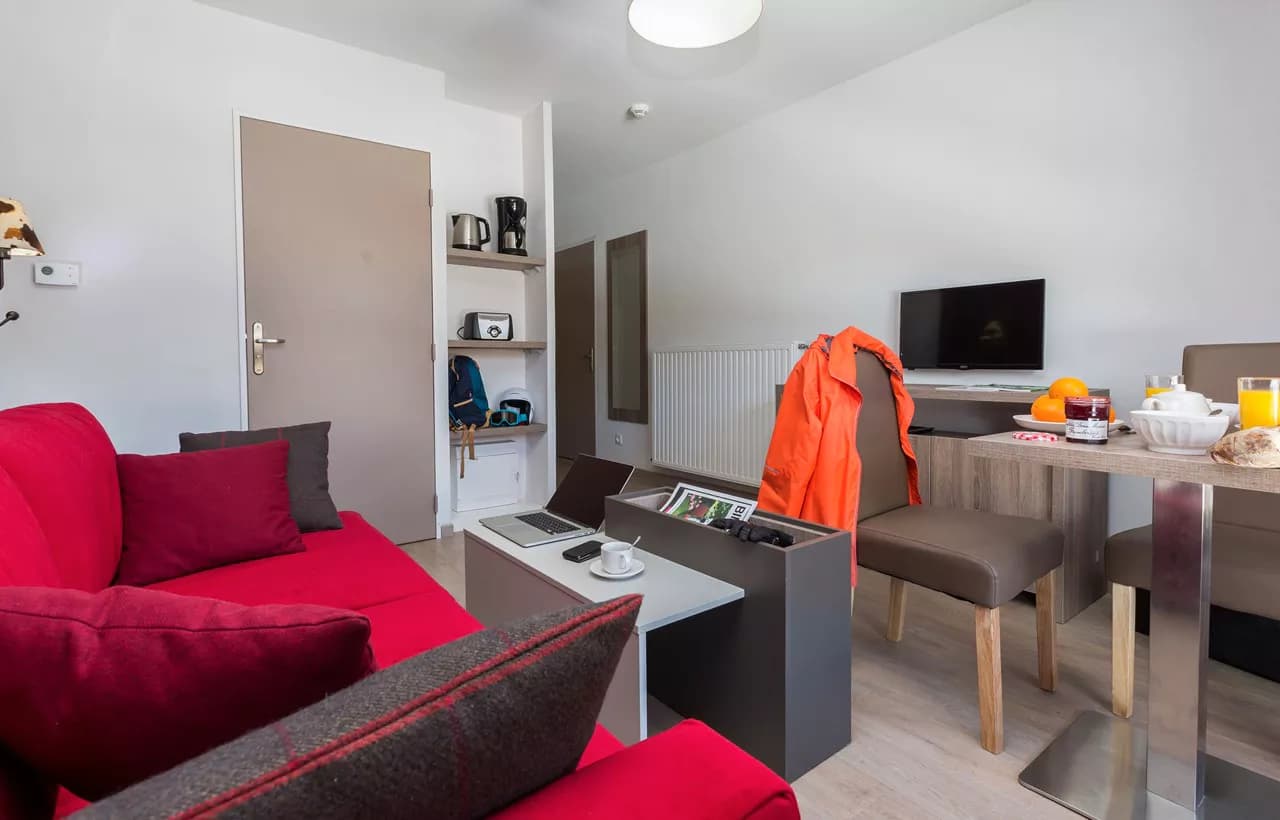 Résidence parfaite pour le ski : skis aux pieds, très calme, appartements confortables et piscine agréable après les pistes.